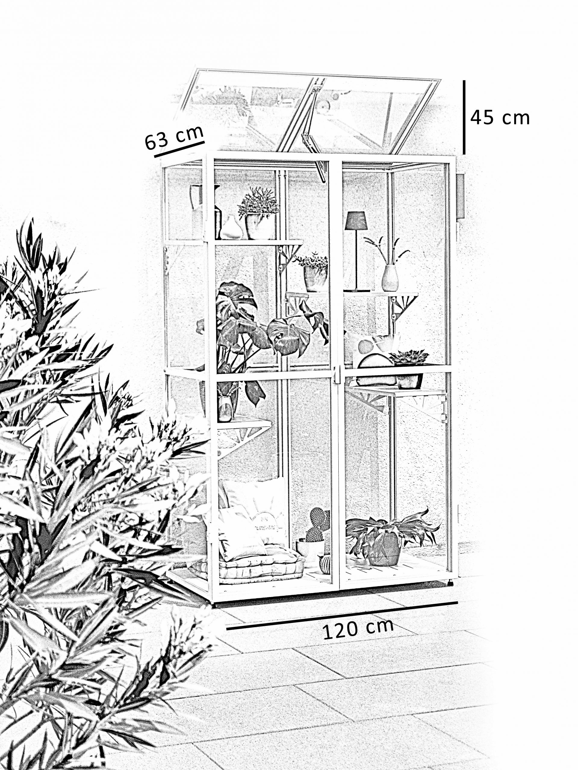 Der Pflanzschrank kann auch mit verschiedenster Deko versehen werden, von Büchern bis hin zu Lichterketten. Der Kreativität sind durch die Maße keine Grenzen gesetzt.
